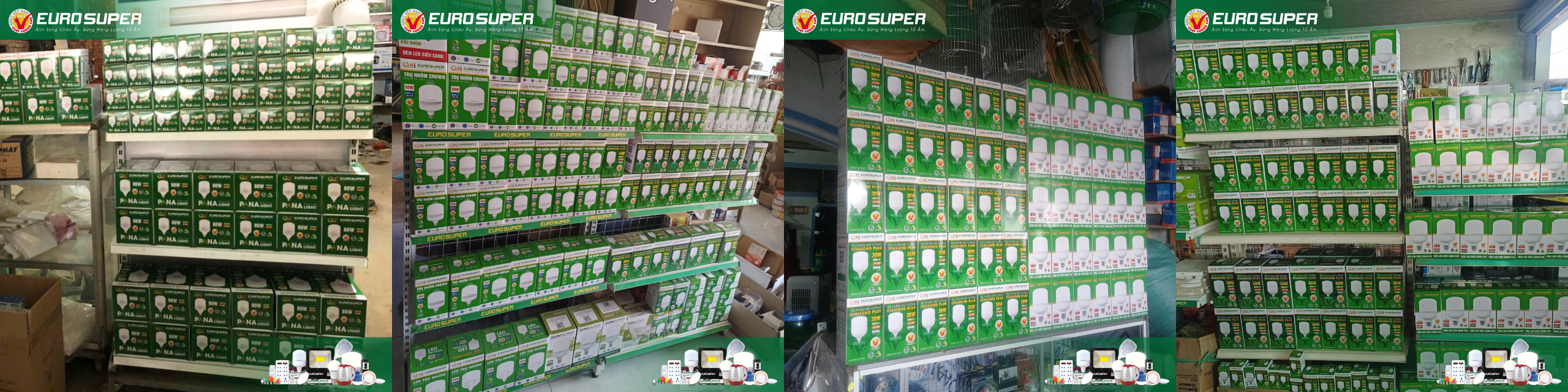 Điều đó có thể thấy rõ khi bước vào các đại lý, cửa hàng chúng ta có thể bắt gặp ngay hình ảnh những chiếc kệ trưng bày đầy ắp sản phẩm của EUROSUPER được các chủ đại lí cùng nhân viên thị trường sắp xếp gọn gàng. Màu xanh đặc trưng nổi bật trên các hộp bóng đèn led trụ nhựa, đèn led trụ nhôm,... Đây là minh chứng cho niềm tin và sự hài lòng của khách hàng đặt trọn vẹn vào EUROSUPER.