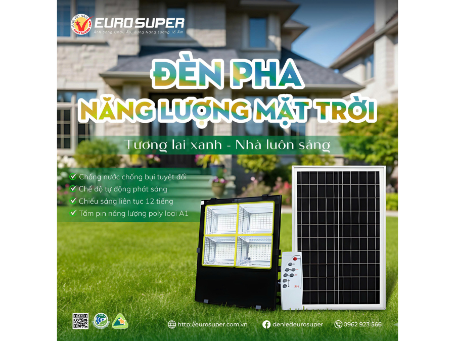 ĐÈN PHA NĂNG LƯỢNG MẶT TRỜI EUROSUPER - TƯƠNG LAI XANH, NHÀ LUÔN SÁNG