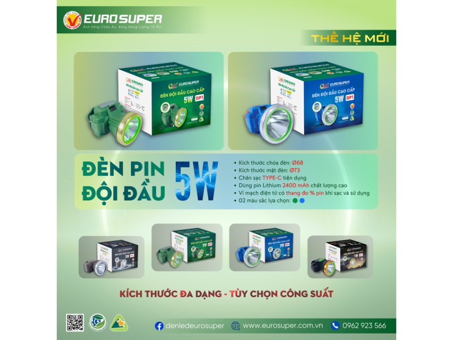Ngoài công suất 5W, ĐÈN PIN ĐỘI ĐẦU THẾ HỆ MỚI EUROSUPER còn có các công suất: 1W & 3W