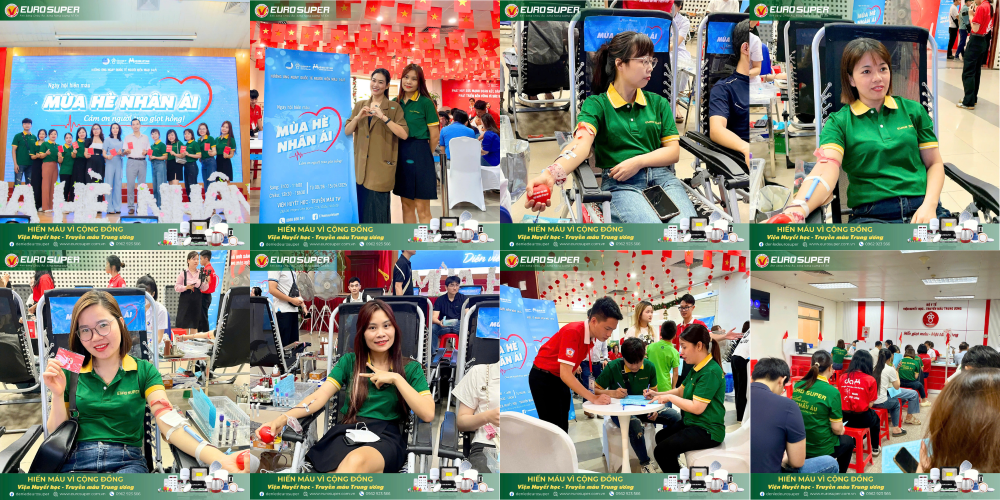 Một trong những hoạt động tiêu biểu trong năm nay là chương trình hiến máu nhân đạo do Viện Huyết học - Truyền máu Trung ương tổ chức. Đây là dịp để cán bộ nhân viên EUROSUPER thể hiện tinh thần thiện nguyện, chung tay mang lại sự sống và niềm hy vọng cho nhiều bệnh nhân đang cần máu. Mỗi giọt máu cho đi là một nghĩa cử cao đẹp, thể hiện rõ trách nhiệm xã hội của doanh nghiệp và của từng thành viên trong tập thể.