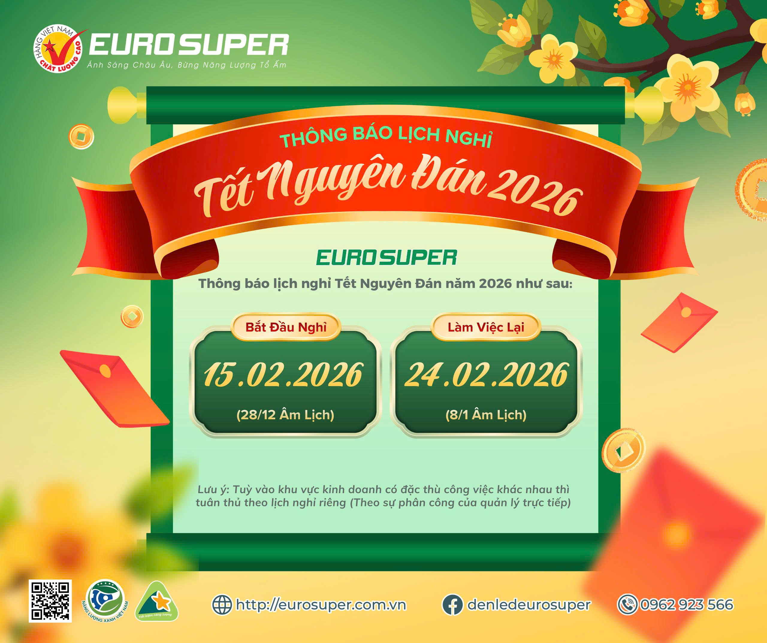 Kính gửi Quý Đối tác & Quý Khách Hàng, EUROSUPER xin thông báo lịch nghỉ Tết Nguyên Đán 2026: